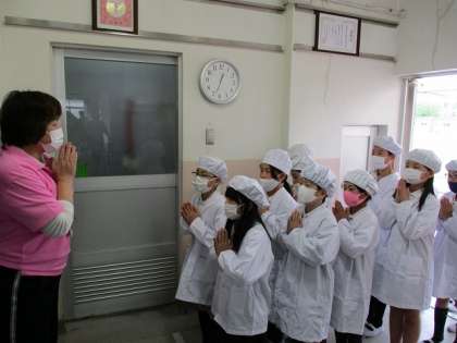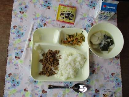 (今日の給食では、ひき肉、きゅうり、にんじん、切り干しだいこんを具材として使っていました。)