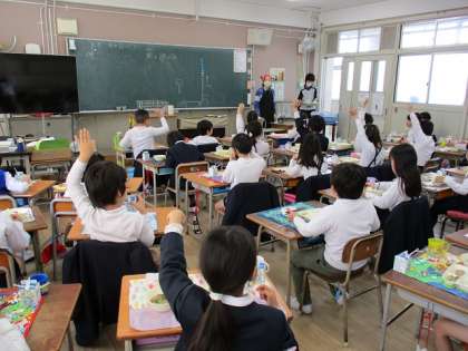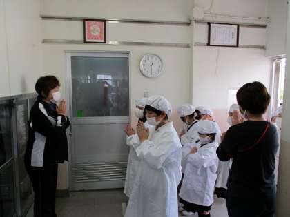 (給食室で手づくりしています。)