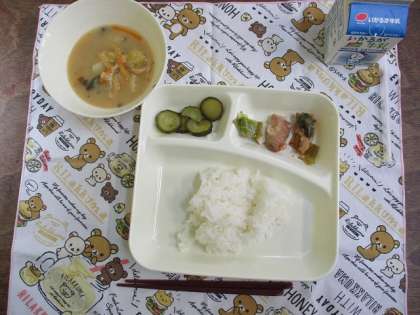 ♦焼きとり♦みそ汁♦きゅうりのゆず風味♦ごはん♦牛乳
