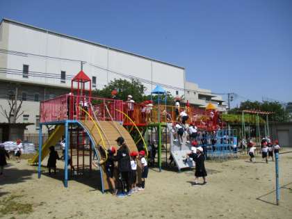 今日は1年生が運動場にデビュー!コンビネーション遊具に興味津々!積極的にトライする姿が印象的でした。
