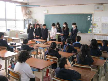 3月12日の児童集会で、縦割り班活動を行いました。今日は6年生への感謝を表す「ありがとう会」でした。6年生に感想を聞くと、「なんかうれしかった」「最後っていう実感が、まだない」とのことでした。
