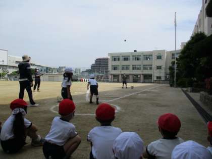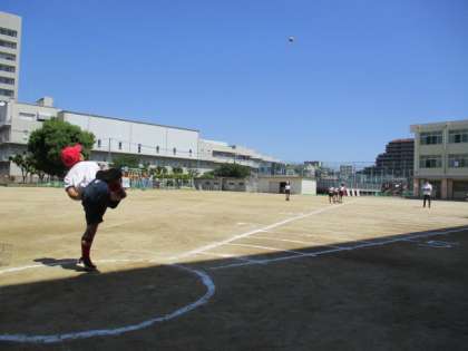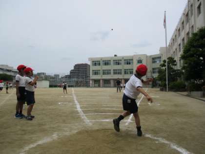 6月1日〜2日の二日間かけて、全学年でソフトボール投げを実施しました。一人ずつ、記録を取りました。