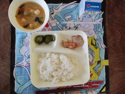 ♦鶏肉のしょうゆバター焼き♦こまつなのみそ汁♦きゅうりのあえもの♦ごはん♦牛乳