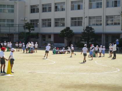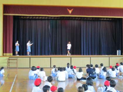 1学期1回目の「たてわり班による児童集会」を行いました。今回は「太陽」のグループが、講堂か運動場で活動しました。