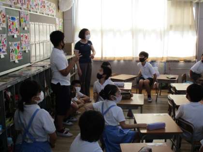 写真下 教室:「月」と「星」のグループは各教室ごとに工夫して楽しみました。