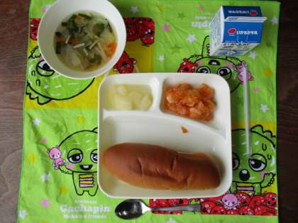 ♦えびのチリソース♦中華スープ♦和なし(カット缶)♦こくとうパン♦牛乳