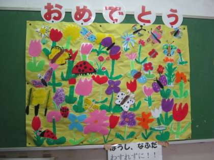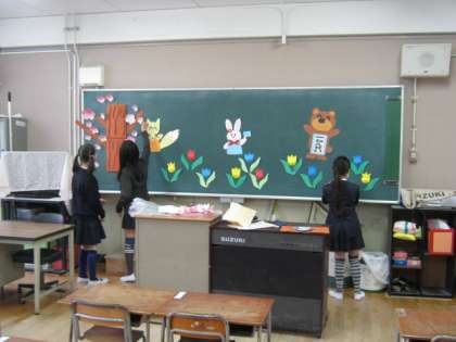 4月6日、明日の入学式の準備のために、新6年生が登校しました。講堂のシートを拭いて椅子を並べたり、1年生の教室の飾り付けをしたり、トイレの掃除をしてくれたりと、活躍してくれました。