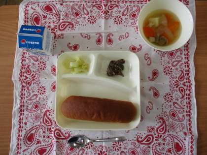 ♦牛肉の香味焼き♦スープ煮♦サワーキャベツ♦こくとうパン♦牛乳