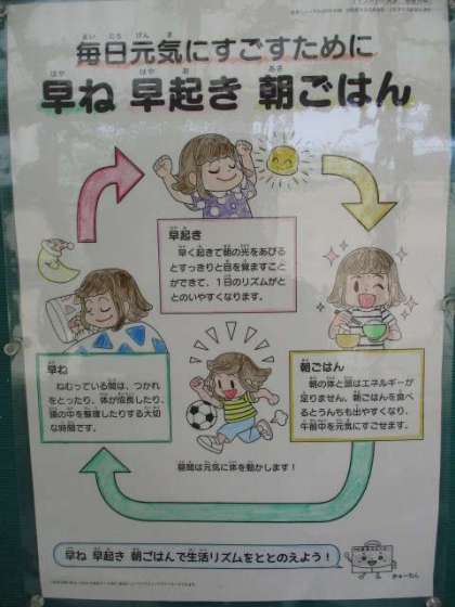 毎日元気にすごすために、早ね・早起き・朝ごはん‼