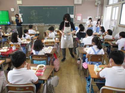 今日の給食には、ごはん、じゃがいも、さとう、油が使われていました。