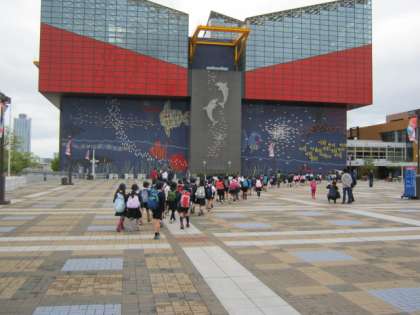 4月21日、3年生は校外学習に行きました。天王寺駅から環状線に乗って大阪の町を見ながら海遊館に到着。たくさんの生き物を見たり触ったりして楽しみました。お弁当は海と船の見える広場でおいしくいただきました。
