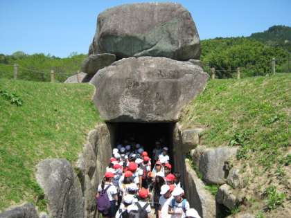 4月23日、6年生は春の校外学習に行きました。近鉄南大阪線に乗り、飛鳥で降りました。歴史の遺跡をめぐりながら、ポイント地点でクイズに挑戦。ゴールには大きな石舞台古墳が待っていました。