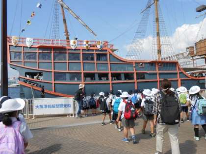 海が見える広場にも行き、サンタマリア号や景色を見て楽しみました。