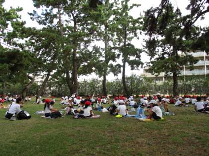 お弁当を食べた後は、北児童遊戯場で遊びました。大きなすべり台やターザンロープなどがあり、ルールを守って安全に楽しく遊ぶことができました。