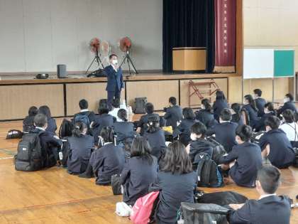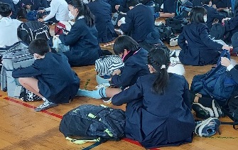 「ルールを守って、楽しい思い出をたくさん作りましょう」校長先生のお話をしっかり聞いていました。