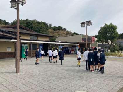 バスでビデオを見ながらしゃべらず静かにしています。」