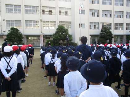 教頭先生からの話を、子どもたちは最後まで真剣に聞いていました。