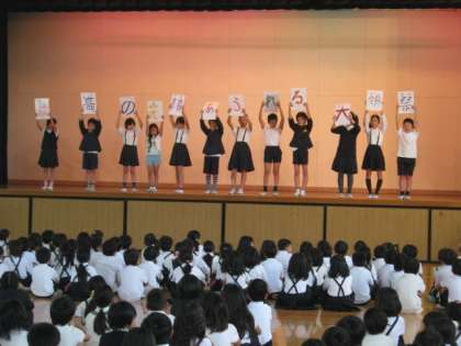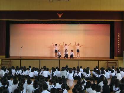 5月14日、児童集会がありました。この日は、5月23日の土曜授業で行う「大領祭」のコマーシャル。最初に児童会から「最高の笑顔あふれる大領祭」というスローガンの発表がありました。次に2年生以上の各学級がお店の宣伝をしました。ダンスを披露したり、漫才風に掛け合いをしたりと楽しいコマーシャルになりました。保護者の皆様もお楽しみに!