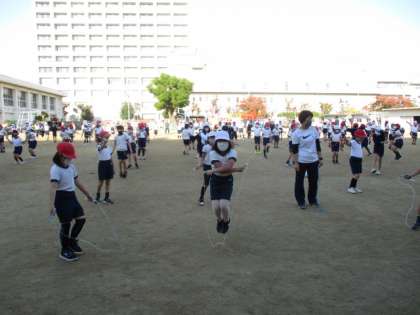 11月17日、3・4年生のなわとび朝会を行いました。