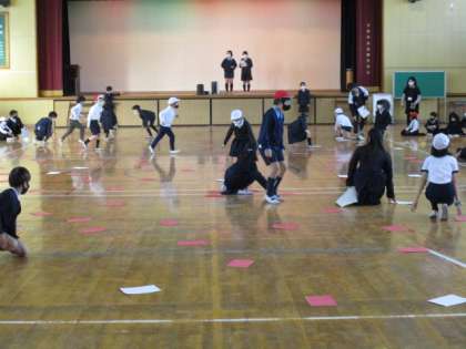 2学期3回目の「たてわり班による児童集会」を行いました。今回は「太陽」のグループが、講堂か運動場で活動しました。