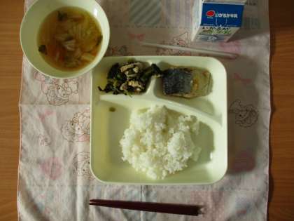 ♦さばのみぞれかけ♦すまし汁♦こまつなの煮びたし♦ごはん♦牛乳