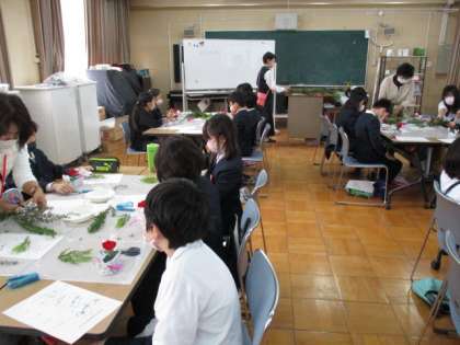 講師は園芸療法士の岡室先生で、NPO法人園芸療法研究会西日本の皆さまにお越しいただき、生涯学習ルームの方々(地域の方々)にもお手伝いいただきました。