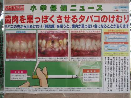 〜タバコの先から出るけむり(副流煙)を吸うと、歯肉が黒っぽい色になることがあります〜