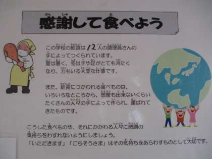 また、学校に食べ物が来るまでに、いろいろな人が携わっています。そうした人々に感謝の気持ちを忘れず、「いただきます」「ごちそうさま」のあいさつをしましょう。