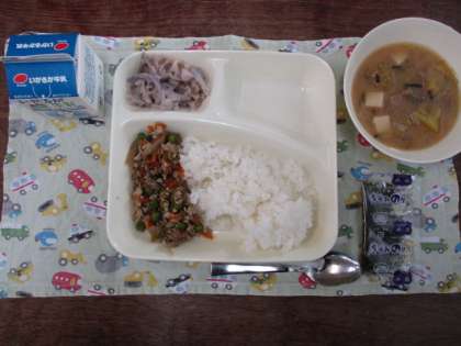 ♦鶏ごぼうご飯♦みそ汁♦焼きれんこん♦牛乳