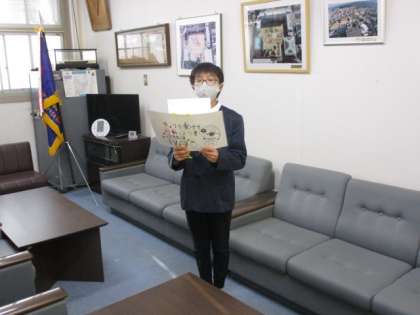 Teamsによるオンラインで実施した7日の児童朝会で代表の児童が、「私たち児童会が、このようなプラカードを下げて歩いていますので、声をかけられないように安全に過ごしてください。」と連絡しました。
