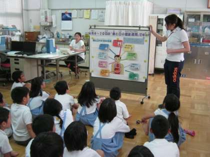 6月3日、1・3年生の体重測定がありました。3年生は保健室の剱先生から「歯と口の健康週間」についてのお話をききました。歯と口の大切な役割がわかりました。