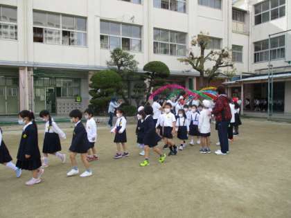 新1年生を迎え、在校生が1年生を大切にする心を育むため、また、1年生が大領小学校の一員としての自覚をもつきっかけとするために行っている行事です。
