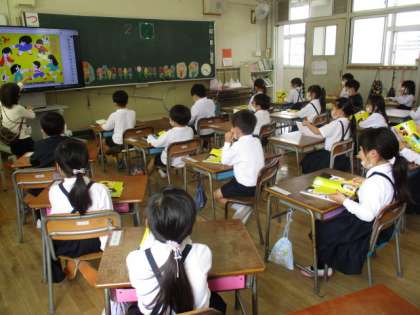 6年生の算数の学習、1年生の国語の学習のようすです。
