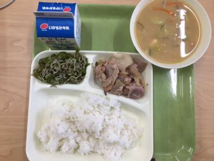 豚肉のしょうが焼き、みそ汁、じゃこピーマンです。