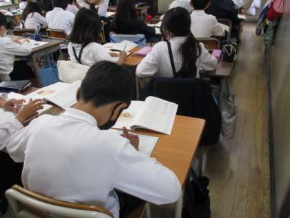 国語の学習では、一生懸命に板書をうつしています。