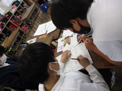 6年生は、グループで意見交流をしていました。