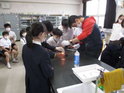 6年生は、理科の実験をしています。スチールウールを燃焼させた後、二酸化炭素が増えているかどうかを調べました。