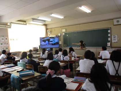 社会科でごみの学習をしました。動画で、ごみ収集のようすを見ています。