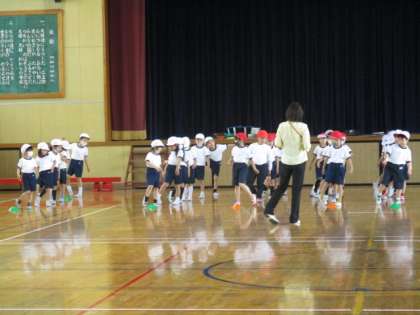 1年生は、整理体操をしているようすです。