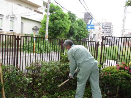 管理作業員さんが、つつじ等の剪定をしたり雑草をぬいたりして、大領の森をきれいにしています。