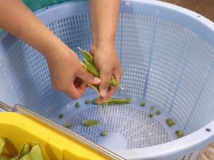 えんどうの作業です。