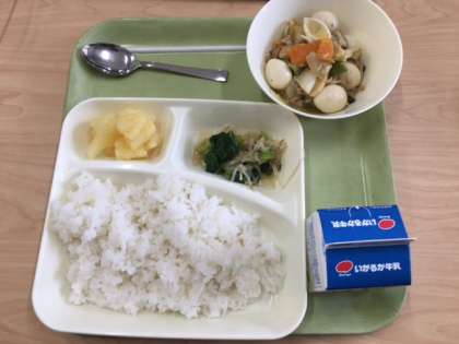 八宝菜、チンゲンサイともやしのしょうがあえ、パインアップルです。