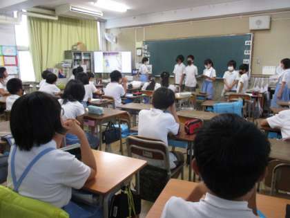 平和学習集会では、練習の成果を発揮し、上手に読み聞かせを行うことができました。また、1年生から5年生の児童は、6年生の読み聞かせを真剣に聞いていました。