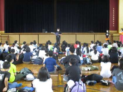 出発式の様子です。校長先生のお話をしっかり聞いていました。