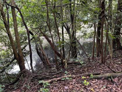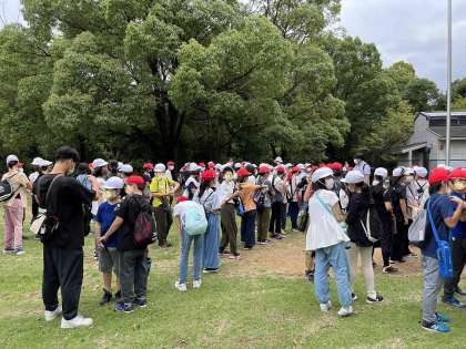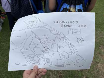 カレーライスを食べておなかがいっぱいになった後は、森の中をハイキングしました。