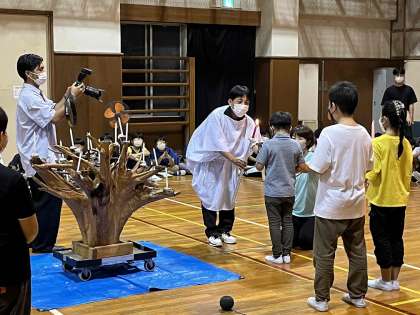 火の神が来て、「自立の火」「福祉の火」「友情の火」をもらいました。」