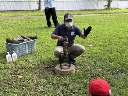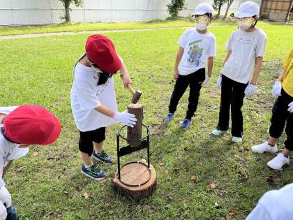現地の伊与田先生より薪割り体験の様子の追加です。