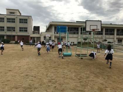 この時間はたくさんの子どもたちが運動場にでてきていました。