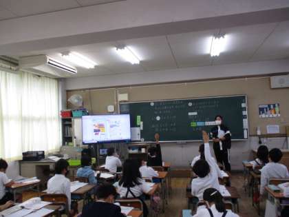 5年生は、C-NETの先生と英語の学習をしています。