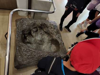 これは何かの恐竜の足跡の化石かな?